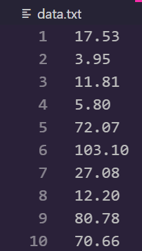 First, I filled in all the numbers I had in a txt file, each on a new line.