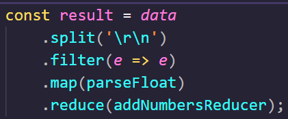 The code itself follows the standard . And inside the callback function I used a bit of a functional approach: multiple methods that get the data from the previous processing, do something on it, and then pass it to the next.